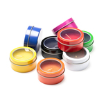 Vanilla scented candle in bright colours presented to match with round metallic holder. Lid with transparent window and white wick.